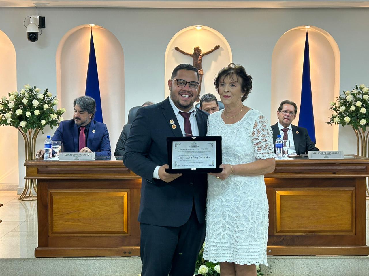 Na noite de quinta-feira (23), a Câmara Municipal de Sacramento realizou uma Sessão Solene para a entrega das honrarias Cartão de Prata de Honra ao Mérito ‘Cerly Auxiliadora da Cunha’, em comemoração ao Dia do Professor, e Diploma de Honra ao Mérito ‘Vera Lúcia Gomide’, em homenagem ao Dia do Servidor Público.