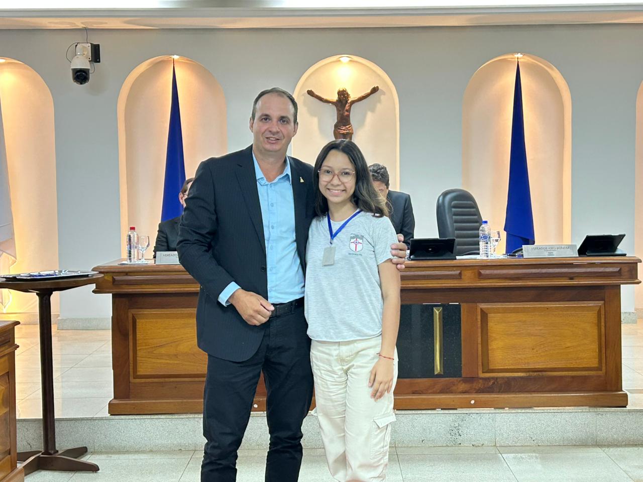 Durante a 18ª Reunião Ordinária do 2º Período de 2025, em 1º de dezembro, o Poder Legislativo entregou a premiação Aluno Nota Dez, instituída pela Resolução nº 384/2023. A iniciativa reconhece estudantes do Ensino Fundamental e Médio que alcançaram as maiores médias em suas escolas ao longo do ano letivo.